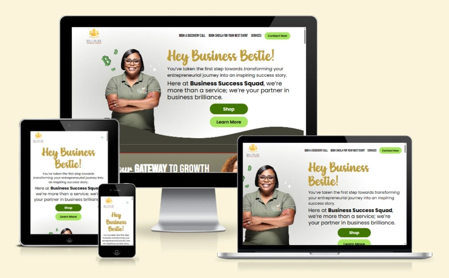 - Custom Brand Identity: A cohesive design system reflecting professionalism and the “Business Bestie” brand voice.