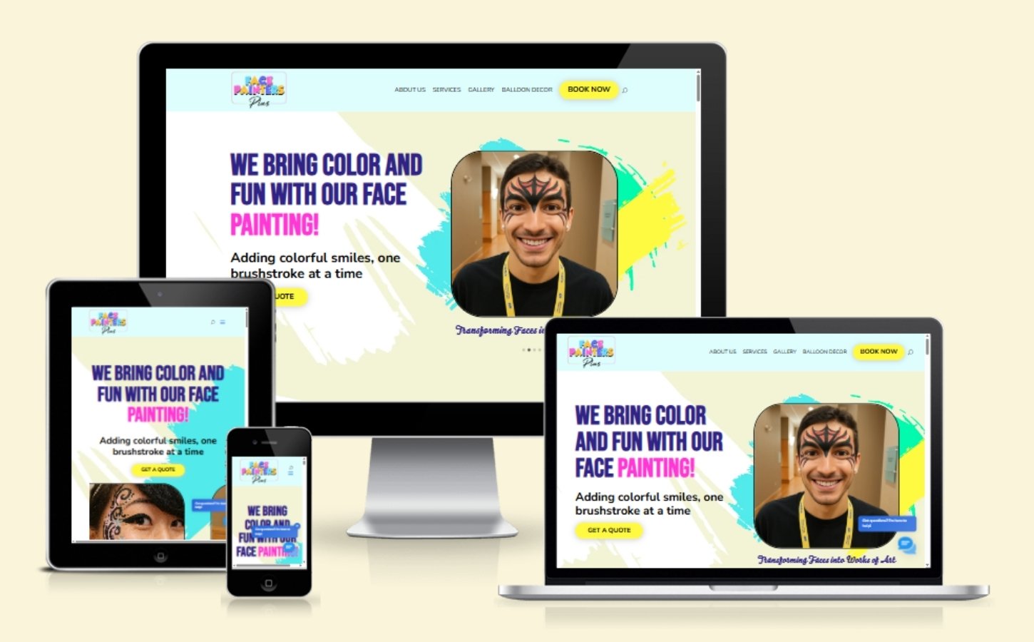 - Dynamic Visual Portfolio: A categorized, high-resolution gallery powered by Modula to showcase professional face-painting artistry across various event types.